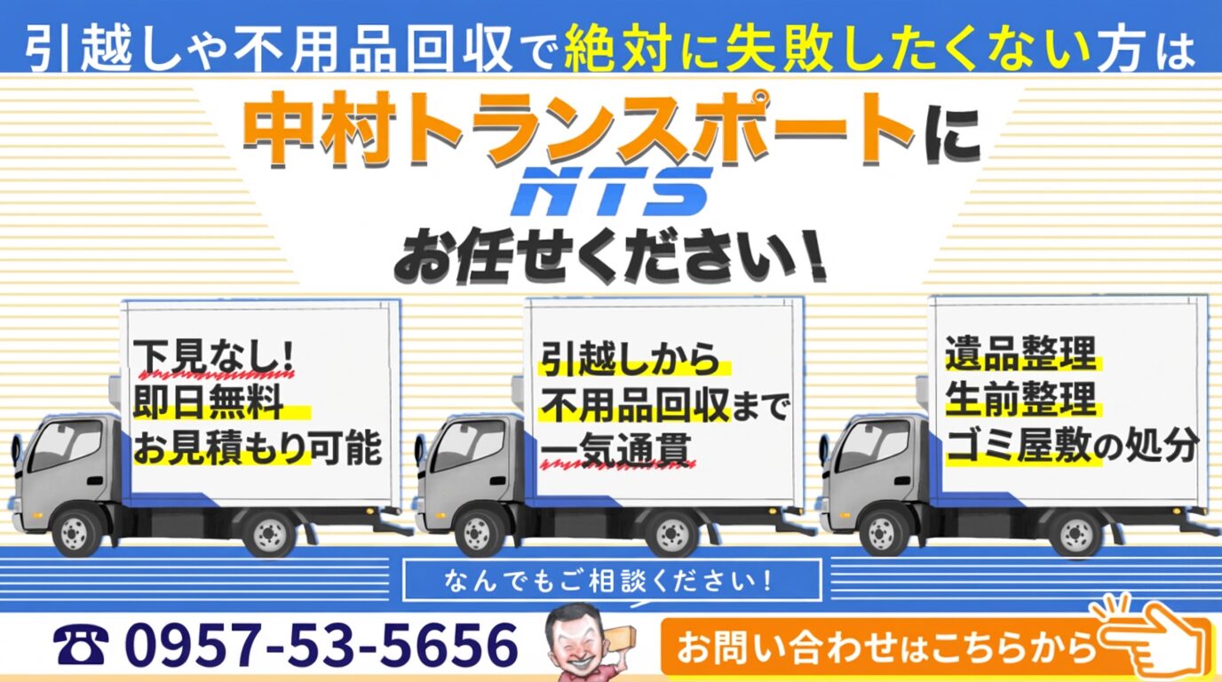 長年利用していたホームページを新しくリニューアルいたしました。 お知らせ よかったらシェアしてね! URLをコピーしました! 長崎の不用品回収の相場について!料金が安い事業者は大丈夫? 関連記事関連する記事はまだ見つかりませんでした。